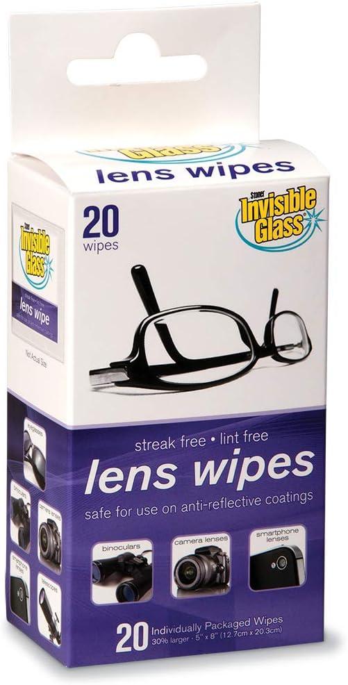 Invisible Glass 90102 Lens Cleaning Wipes – Streak-Free, Lint-Free Wipes for Glasses, Camera Lenses, Binoculars & Smartphone Cameras, Safe on Reflective Coatings – 20 Count(20 Count (Pack of 1))