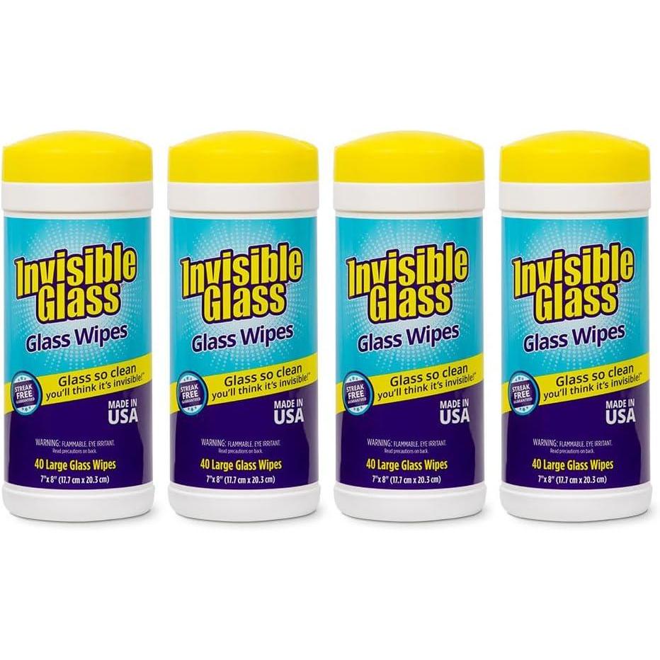 Invisible Glass 90160-3PK Glass Cleaning Wipes, Pre-Moistened, Streak-Free and Lint-Free, Safe for Windows, Mirrors, Windshields, and Tinted Glass, 40 Count (Pack of 3)(40 Count (Pack of 4))
