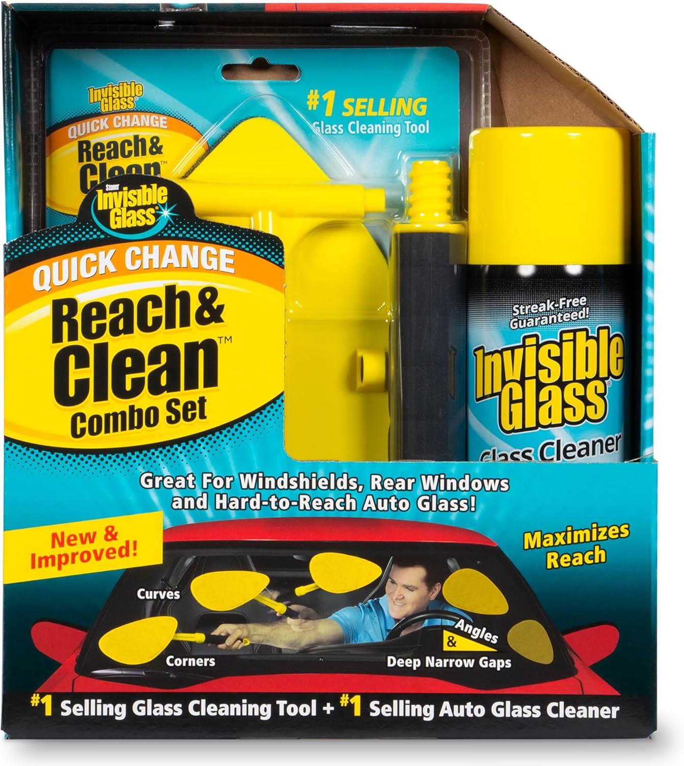 Tired of struggling to clean hard-to-reach glass in your car or home? Say goodbye to the hassle and hello to sparkling results! The Invisible Glass Reach & Clean Kit makes cleaning easier than ever with the power of our #1 Selling Auto Glass Cleaner and the innovative Reach & Clean tool. This kit is your ultimate solution for effortless, streak-free cleaning that saves time and effort. Featuring an 18-inch handle and two reusable, reversible, and washable microfiber bonnets, this kit is built for rigorous use. Effortlessly tackle tight spaces and high areas while achieving a stunning, lint-free shine every time. Don’t settle for streaks and smears—trust the original windshield cleaner for fast, efficient, and brilliantly clear glass. Experience the difference for yourself and enjoy spotless windows with ease. Get your kit today and see the shine!