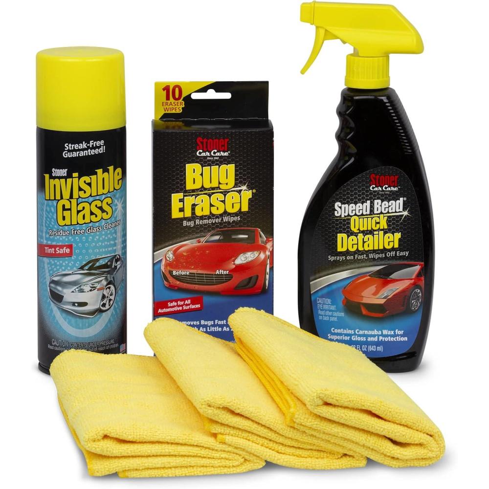 Stoner Car Care 99004 Car Show Touch-Up 6-Piece Kit for Automotive Detailing with Speed Bead Quick Detailer for Shine and Gloss, Grime Eraser, Invisible Glass Premium Glass Cleaner, Three Microfibers(22 Fl Oz (Pack of 1))